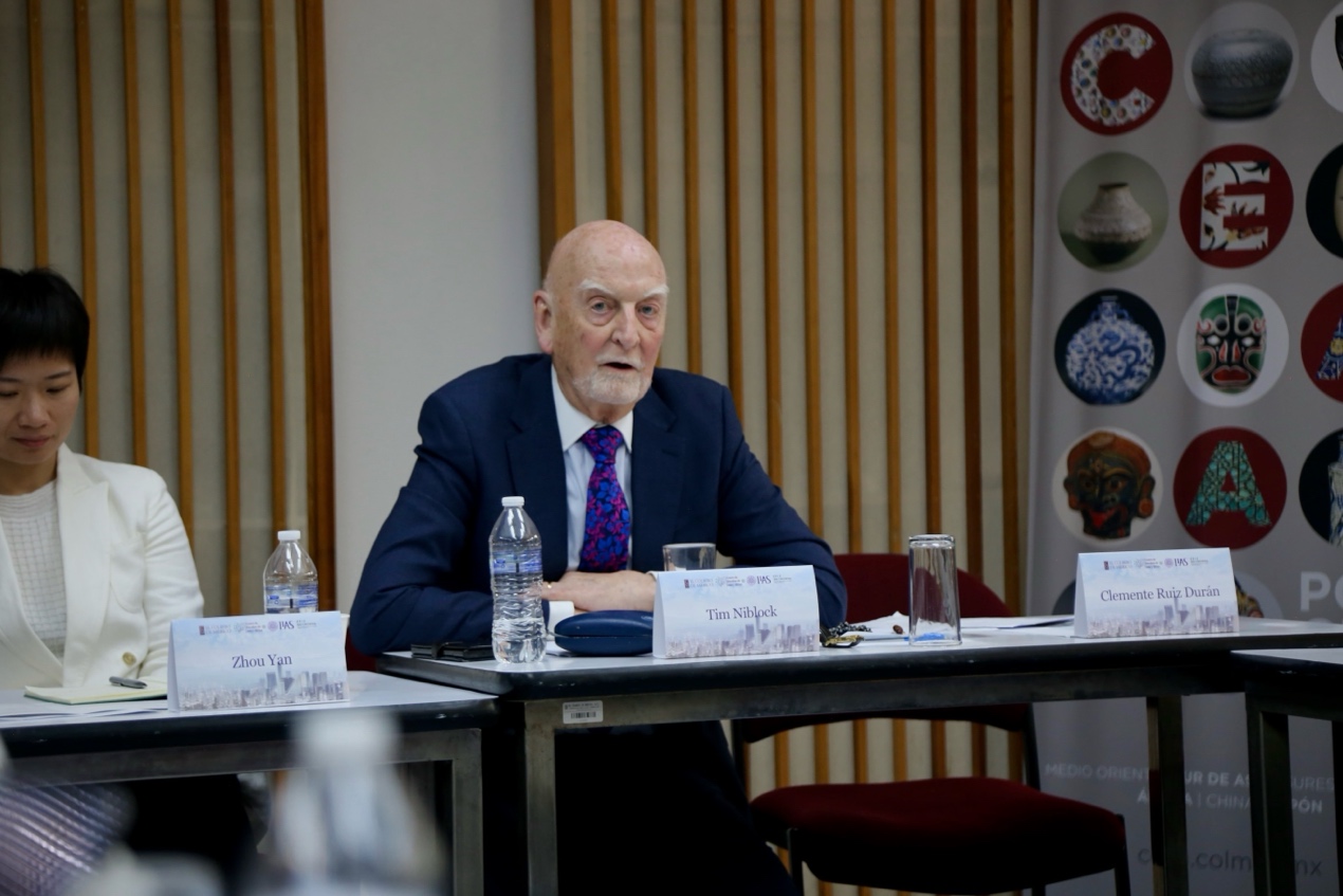 全球问题研究中心主任、埃克塞特大学荣休教授蒂姆·尼布洛克(Tim Niblock)对主旨发言和讨论内容进行总结与评论。他充分肯定了此次研讨会对拉美地区研究的推动作用,希望能够借此加强双方的学术交流,通过不同的视角进一步加深对区域发展的理解。同时,墨西哥学院亚非研究中心主任塞尔韦拉教授高度评价了各个主旨发言,希望能够长期保持中墨的学术合作关系,并在未来进一步加强。在热烈的交流与讨论氛围中,地区研究院墨西哥田野站学术路演活动圆满结束。